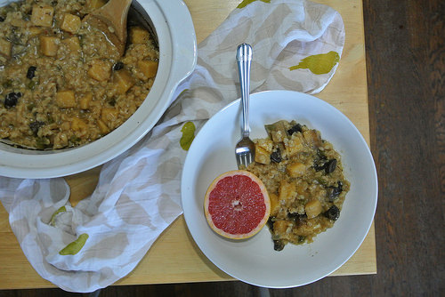 Meanwhile, shred/julienne the carrot and poblano (feel free to use a julienne or vegetable peeler, or a good knife if you're comfortable with one). Whisk together lime, oil, cumin, coriander, and pinch salt. Pour over vegetables and toss well. It will be quite tart, but will mellow a bit as it sits.