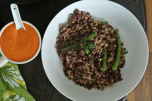 Dead Simple Red Bean, Collard, and Hominy Soup over Rice