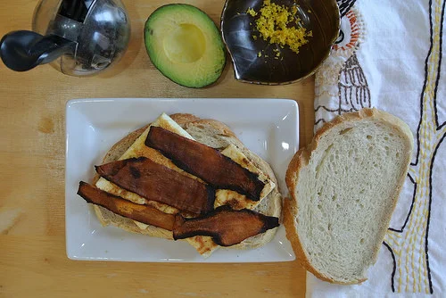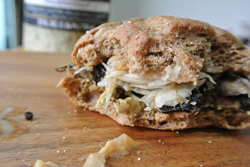 Well, almost. First, you whip up this simple tahini spread. Which is currently the favorite sandwich spread in the MSV kitchen. It's lemony and satisfying, and hangs onto a sandwich without running all over the place like thinner tahini sauces. And it's all thanks to pureeing in just a little bit of silken tofu. Did I mention handy?