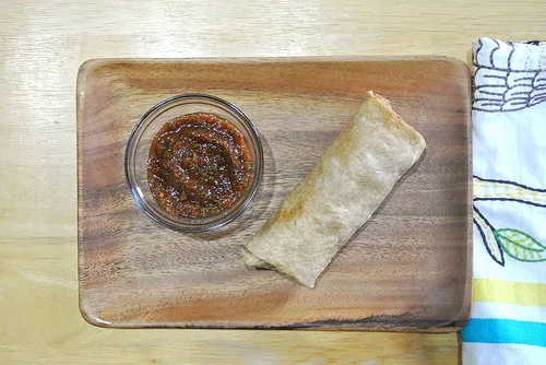 Increase oven temperature to 375. To assemble, heat tortillas (microwave works quickly for this, if you have one). Assemble using about a scant quarter-cup potato, one-quarter cup tofu, a generous tablespoon of pinto beans, and two slices of avocado for each burrito. Roll up and place seam-down on the baking sheet. Bake until crisped and beginning to brown at the edges, about 25 minutes. Let cool 10 minutes. Serve with salsa.
